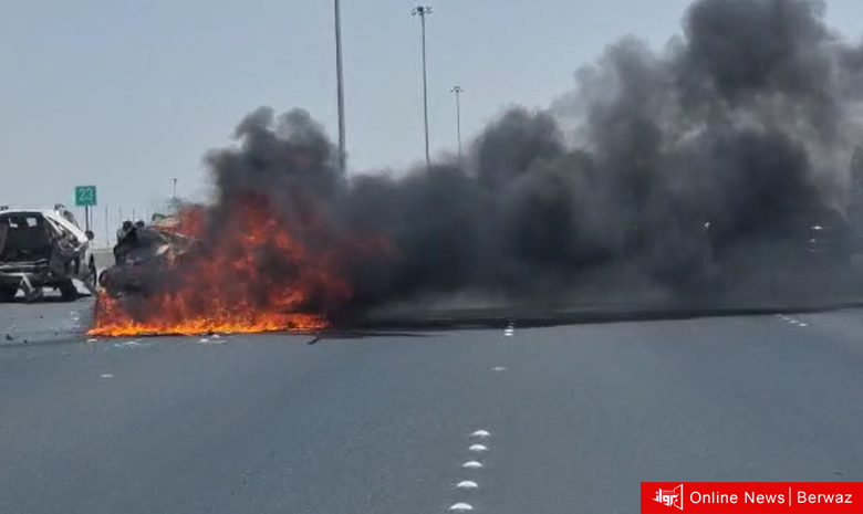تعرضت مركبتين على جسر «أمغرة» لحادث قوي ما نتج عنه احتراق إحداهما.