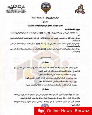 وأكد الديوان أن هذا النظام سيستمر لعدة أشهر حتى الإنتهاء من دراسة نظام الدوام المرن.