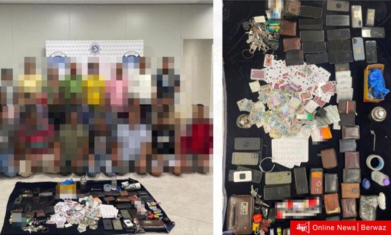وأضافت الادارة، في بيان لها، اليوم السبت، أنه عثر بحوزتهم على ورق لعب ومبالغ نقدية متفاوتة وورق للتسجيل ومشروبات يشتبه بانها مواد مسكرة محلية الصنع وأدوات تعاطٍ ومادة الشبو المخدرة، وتمت إحالتهم والمضبوطات إلى جهات الاختصاص لاتخاذ اللازم بحقهم.