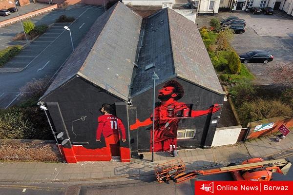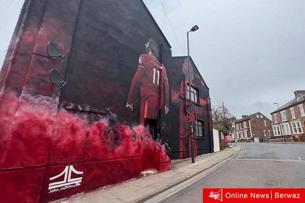 حيث تقع الجداريّة التي تحمل صورتين لصلاح، والتي صمّمها الفنّان التشكيلي “جون كولشو” في طريق أنفيلد المؤدّي إلى معقل ليفربول.