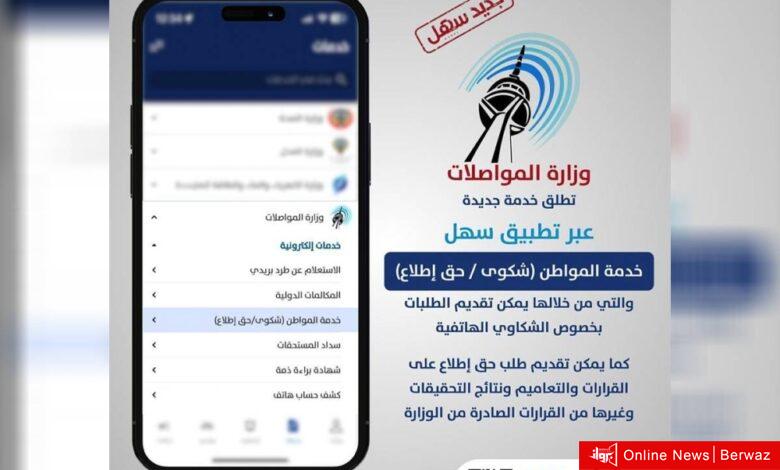 ومن جانبه ذكر المتحدث باسم وزارة المواصلات د.أحمد الحسيني إن الخدمة الجديدة ستكون تحت مسمى (خدمة المواطن) يتم من خلالها يمكن تقديم الطلبات بخصوص الشكاوي الهاتفية المتعلقة بخدمات الوزارة كما توفر إمكانية تقديم طلب حق إطلاع على القرارات والتعاميم ونتائج التحقيقات وغيرها من القرارات الصادرة من الوزارة.