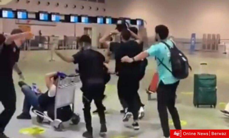 شاهد رقص لاعبي الأهلي أمام مشجع الوداد الزملكاوي في مطار المغرب