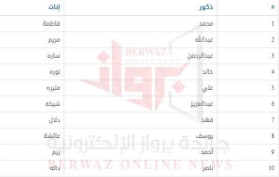 وفيما يلي قائمة بأكثر عشرة أسماء انتشارا في الكويت من الذكور و الاناث بحسب آخر احصائية قامت بها الهيئة العامة للمعلومات المدنية لعام 2019.