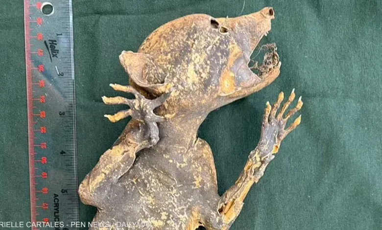 يُحقق العلماء حاليا في هوية “مخلوق غامض” محنط، يشبه القطط من حيث الحجم، لكن بأيدٍ تكاد تكون بشرية، عُثر عليه داخل مبنى تاريخي في جامعة ولاية ميشيغان بمدينة إيست لانسينغ الأميركية.