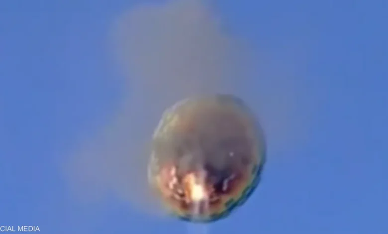 وأظهر مقطع مصور أعمدة من الدخان تنبعث من المنطاد الذي شبت فيه النيران، فيما تهاوى نحو الأرض.