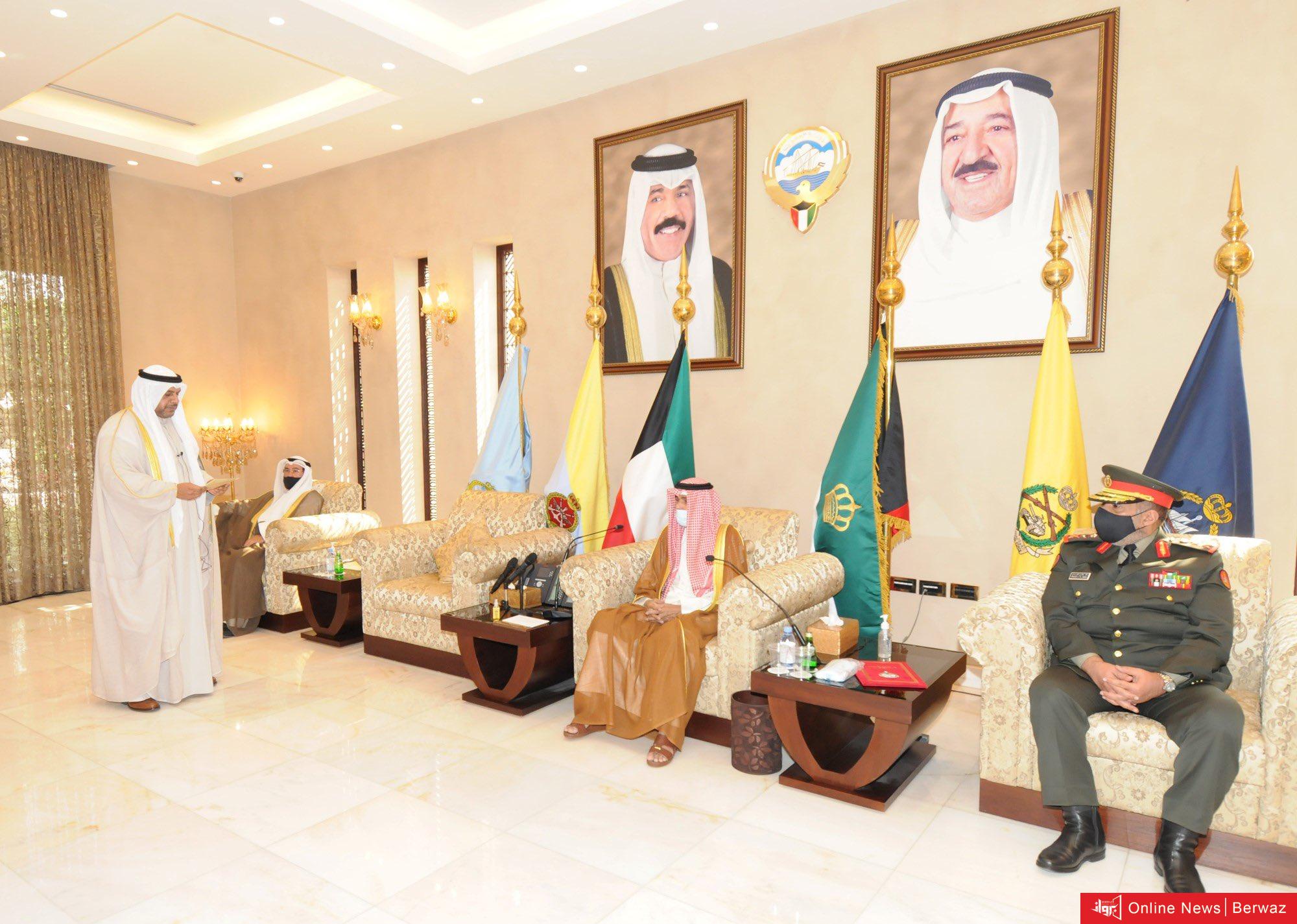 الأخ نائب رئيس مجلس الوزراء ووزير الدفاع الشيخ / أحمد منصور الأحمد الصباح الأخ رئيس الأركان العامة للجيش الفريق الركن الشيخ / خالد صالح الصباح