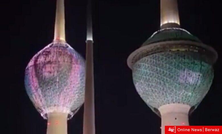 أبراج الكويت تتزين بالعلم السعودي وصور سمو ولي العهد بن سلمان