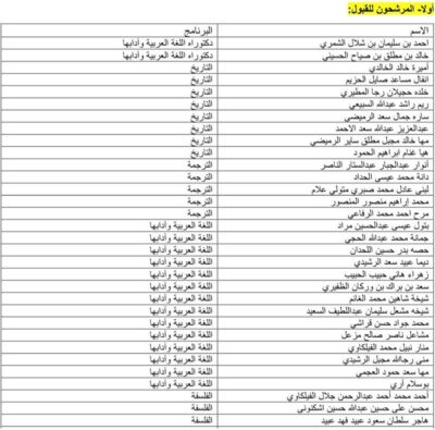 أسماء المقبولين في برامج الدراسات العليا بكلية الأداب