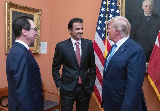 التقى الأمير تميم بن حمد آل ثاني، أمير دولة قطر مع الرئيس الأمريكي دونالد ترمب في العاصمة الأمريكية واشنطن وذلك خلال الزيارة التي يقوم بها الأمير القطري للولايات المتحدة الأمريكية.
