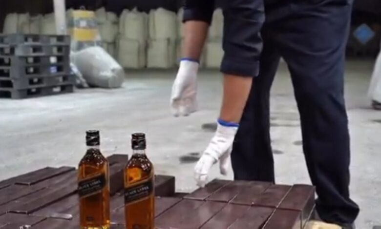 إلا أن المعاينة الدقيقة والتفتيش الميداني كشف عن وجود مخابئ سرية داخل أرضية الحاوية تحتوي على كميات كبيرة من الخمور المعبأة بطريقة احترافية.