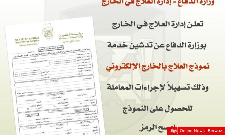 أفصحت إدارة العلاج في الخارج بوزارة الدفاع عن إطلاق خدمة نموذج العلاج بالخارج (الإلكتروني) وذلك تسهيلاً لإتمام إجراءات المعاملة.