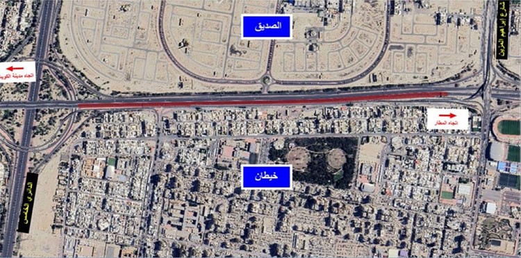 أعلنت وزارة الأشغال العامة بالتعاون مع الإدارة العامة للمرور عن إغلاق الحارة السريعة والحارة الوسطى على طريق الملك فيصل باتجاه المطار، من تقاطع الدائري الخامس وحتى تقاطع شارع إبراهيم المزين.