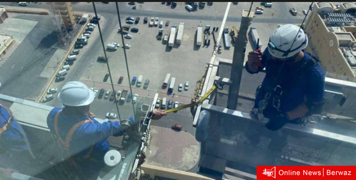 إنقاذ شخصين علقا على سقالة في الطابق 21 بأحد مباني حولي