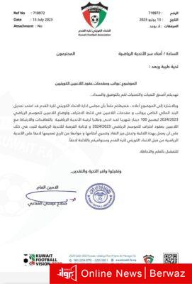 أصدر الاتحاد الكويتي لكرة القدم قراره بإحداث تعديلات جديدة على رواتب ومقدمات اللاعبين في عقود الاحتراف للموسم الرياضي 2023-2024.