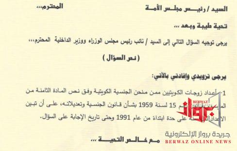 احمد نبيل يطلب أعداد زوجات الكويتيين الحاصلات على الجنسية منذ عام 1991