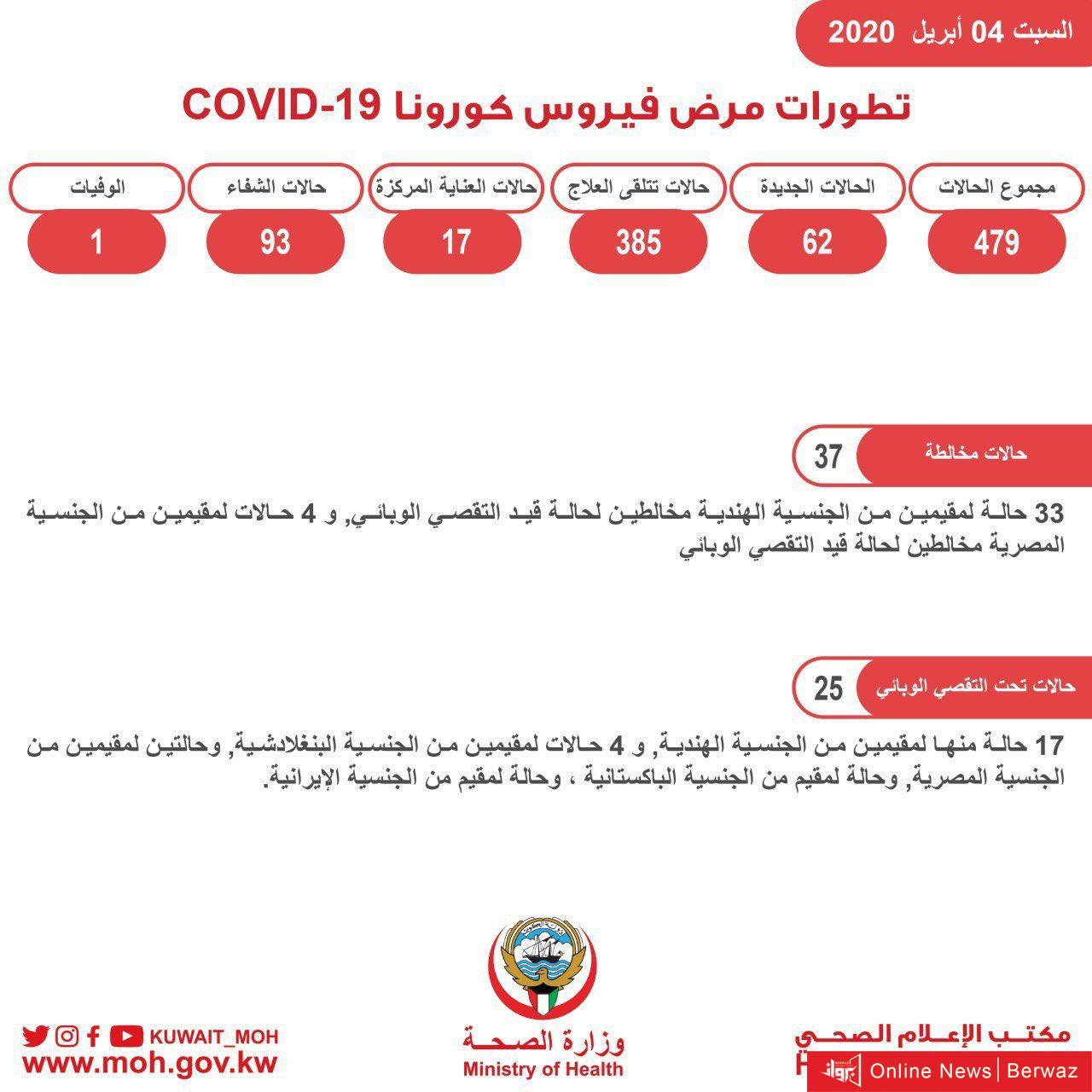ليرتفع بذلك عدد الحالات المسجلة في البلاد إلى حالة 479.