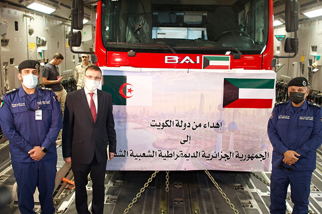 وغادرت صباح اليوم الثلاثاء طائرتين تابعتين للقوة الجوية الكويتية إلى جمهورية الجزائر الشقيقة تحملان على متنهما ست آليات إطفاء مجهزة بكامل معداتها.