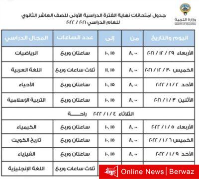 وذلك للأقسام (العلمي والأدبي) والتعليم الديني للعام الدراسي 2022/2021 والتي ستبدأ 29 الجاري وتنتهي 24 يناير 2022.