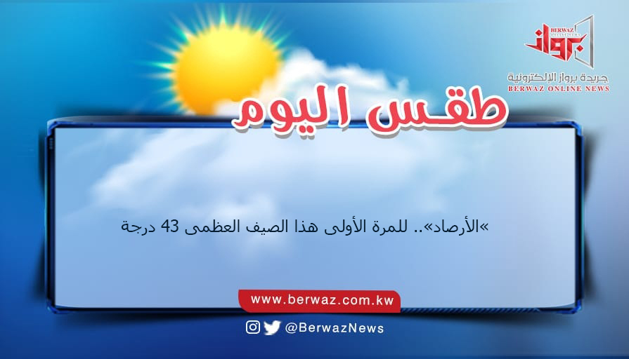 سجلت درجات الحرارة للمرة الأولى منذ بداية فصل الصيف درجة الحرارة ٤٣ درجة مئوية حيث توقعت إدارة الأرصاد الجوية، اليوم، أن يسود طقس حار تكون عظماه ٤٣ مئوية في حين تكون الصغرى ٢٦ درجة مئوية.