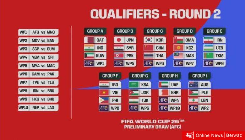 أما المجموعة الرابعة: عمان، قيرغيزستان، ماليزيا – الفائز من مباراة الصين تايبيه وتيمور الشرقية، وفي الخامسة: إيران، أوزبكستان، تركمانستان والفائز من مباراة (هونغ كونغ وبوتان).