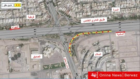 أعلنت وزارة الأشغال العامة بالتعاون مع الإدارة العامة للمرور عن الإغلاق المؤقت للطريق المنعطف من شارع دمشق إلى طريق الدائري الخامس باتجاه السالمية.