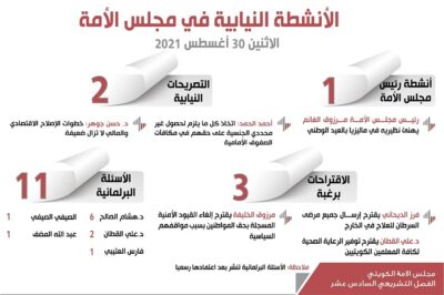 الأنشطة النيابية في مجلس الأمة ليوم الاثنين 30 أغسطس 2021
