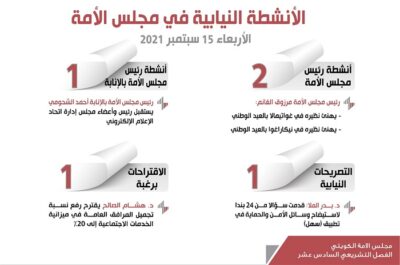 الأنشطة النيابية في مجلس الأمة ليوم الاربعاء 15 سبتمبر 2021