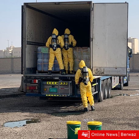 وتبين عند الوصول الى الموقع وجود عدد 16 جركل من مادة قلوية غير قابلة للاشتعال تستخدم في صناعات مواد التنظيف والتسرب كان محدودا.