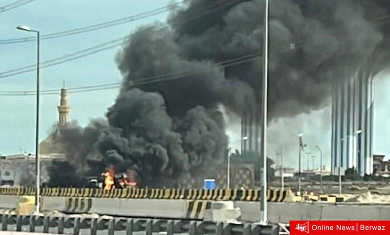 الإطفاء تحاول السيطرة على اشتعال تنكر محمل بالقار مقابل منطقة الصديق