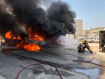 تعامل رجال اطفاء مراكز مبارك الكبير والقرين مع حريق 7 مركبات في ساحة ترابية بمنطقة الظهر. ولم يسفر الحادث عن وقوع أي إصابات بشرية،