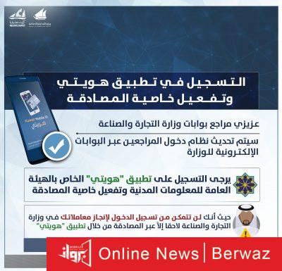 طالبت وزارة التجارة والصناعة اليوم الأربعاء، المراجعين بالتسجيل في تطبيق (هويتي) الخاص بالهيئة العامة للمعلومات المدنية وتفعيل خاصية المصادقة.