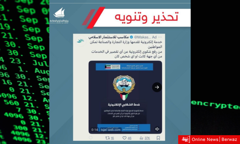 وشددت «التجارة» على أن هذا الحساب لا يتبع الوزارة بأي شكل من الأشكال، كما أن الوزارة لا تقوم بطلب أي بيانات بنكية عند تقديم الشكوى أو بعدها.