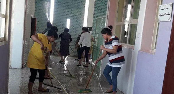 قامت وزارة التربية متمثلة بادارة الخدمات العامة بالبدء بحملة تنظيف في جميع المدارس بكافة المناطق التعليمية.
