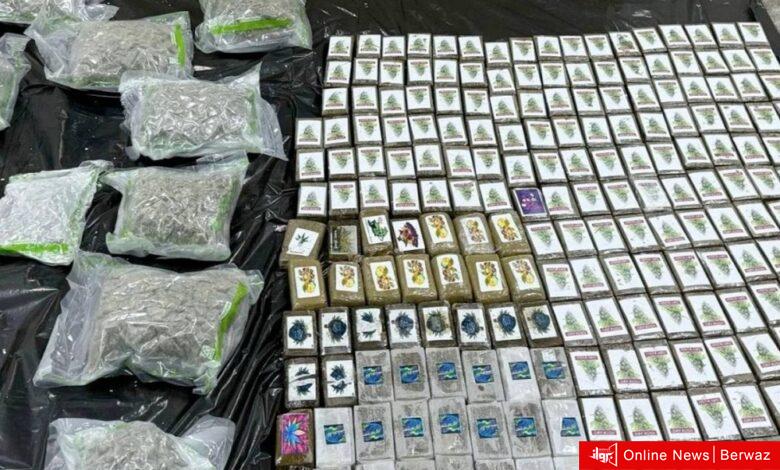 فيما ذكرت الإدارة العامة للجمارك أنه في يوم الخميس 16 الجاري، تم تفتيش الطرد واتضح أن هناك شنطتين بداخلهما ملابس وعدد من الكبسولات الكبيرة كانت مخبأ بداخلها مادة الحشيش والماريغوانا المخدرة بطريقة احترافية حيث تزن المضبوطات ما يقارب 26.5 كيلو غرام، وعليه تم ضبط المتهمين والتحفظ على المضبوطات وإحالتها إلى جهات الاختصاص.