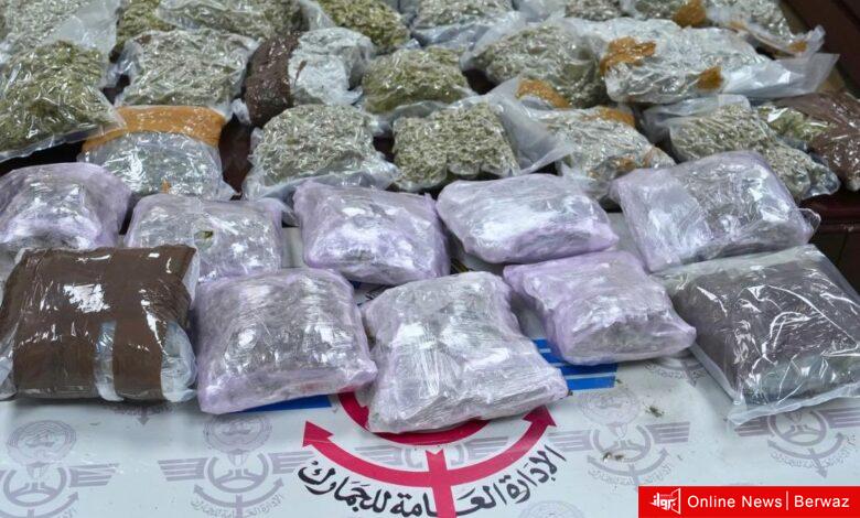 وذكرت الإدارة العامة للجمارك، اليوم السبت، أنه تم ضبط الشحنة بعد اشتباه فريق الاستهداف الجمركي بمحتويات الحقائب، ليتم إخضاعها لتفتيش دقيق، وعند الكشف عليها تبين وجود نحو 33 كيلوغرامًا من مادة الحشيش المخدرة بالإضافة الى 17 كيلوغرامًا من عشبة الماريجوانا المخدرة قادمة من دولة أوربية.