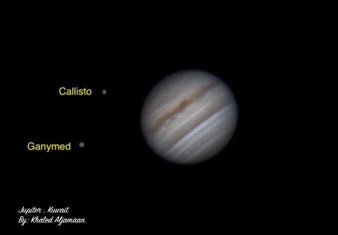 وذكر أن هذه الفترة تعتبر من أفضل أيام السنة لرصد وتصوير كوكب المشتري مفيدا انه وفقا للحسابات الفلكية سيكون ثاني ألمع جسم سماوي في سماء الكويت بعد القمر بلمعان قدره (2.5-) وسيزداد هذا اللمعان في شهر يونيو المقبل.