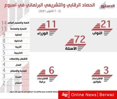 الحصاد البرلماني في أسبوع.. 72 سؤالاً و3 إقتراحات بقوانين و6 إقتراحات برغبة