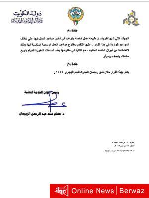 وأوضح القرار أنه يجوز لكل جهة حكومية اختيار أكثر من ميعاد للدوام الرسمي من المواعيد المشار إليها في القرار، وذلك حسب ظروف وطبيعة العمل وبما لا يخل بسير العمل في الجهة.