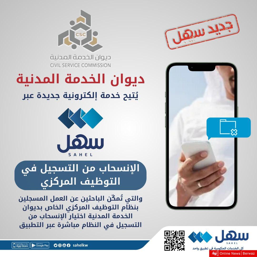 وأشاف سهل أن الخدمة موجودة عبر الموقع الإلكتروني للديوان أيضاً وهي “الانسحاب من التسجيل في التوظيف المركزي”.