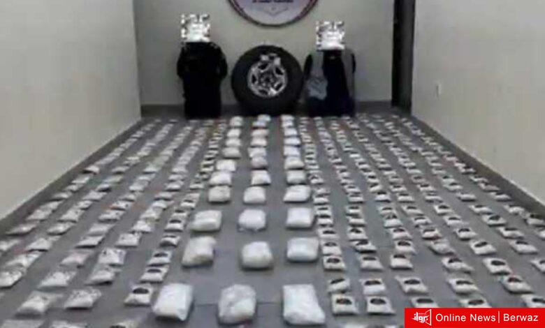 وأوضحت الداخلية، في بيان لها، اليوم السبت، أنه بتكثيف التحريات وجمع المعلومات اللازمة ومراقبة المنفذ والانتشار على المنطقة الحدودية، تمكن رجال الإدارة العامة لمكافحة المخدرات من ضبط شخصين، وبتفتيش المركبة تبين وجود نحو (35) كيلو من الشبو وحوالي 300 ألف حبة من الكبتاغون تم إخفائها بطريقة سرية داخل العديد من أجزاء المركبة الداخلية، وتقدر قيمتها السوقية بأكثر نصف مليون دينار كويتي، وجاري إحالتهما لجهات الاختصاص لاتخاذ اللازم بحقهما.