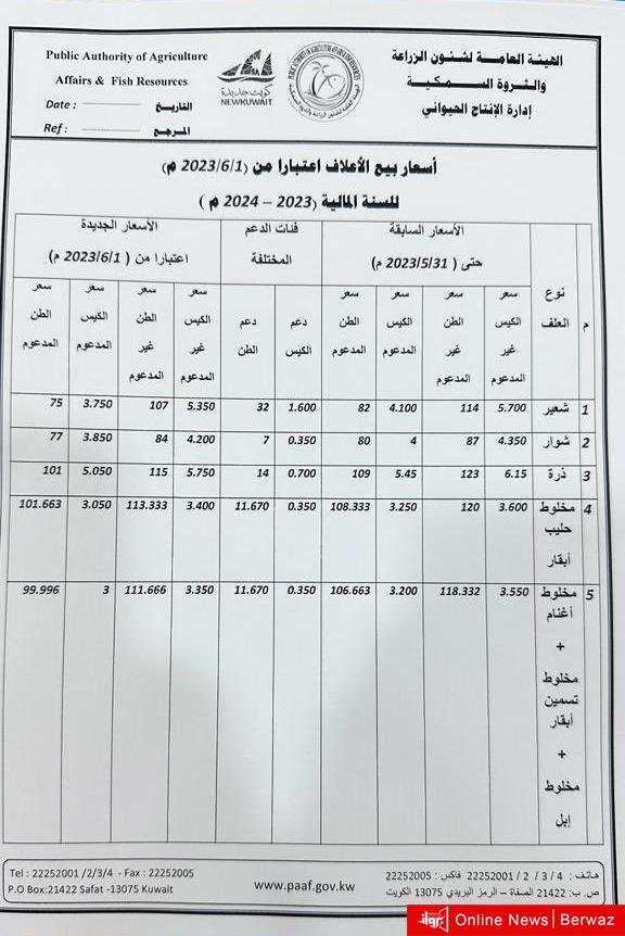 أفصحت الهيئة العامة لشؤون الزراعة والثروة السمكية عن تطبيق تخفيضات فعلية في أسعار بيع الأعلاف بداية من الغد الخميس الأول من يونيو وفقًا لمصادر مطلعة.