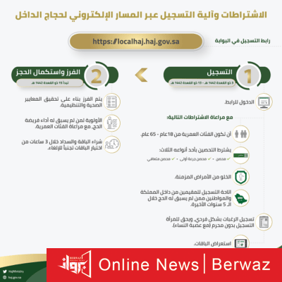 وأصدرت الوزارة بياناً أوضحت فيه الاشتراطات وآلية التسجيل عبر المسار الإلكتروني لحجاج الداخل لحج 1442هـ، مبينة أن التسجيل يستمر حتى 13 ذي القعدة الجاري، على أن يبدأ الفرز واستكمال الحجز اعتباراً من 15 ذي القعدة الجارى.