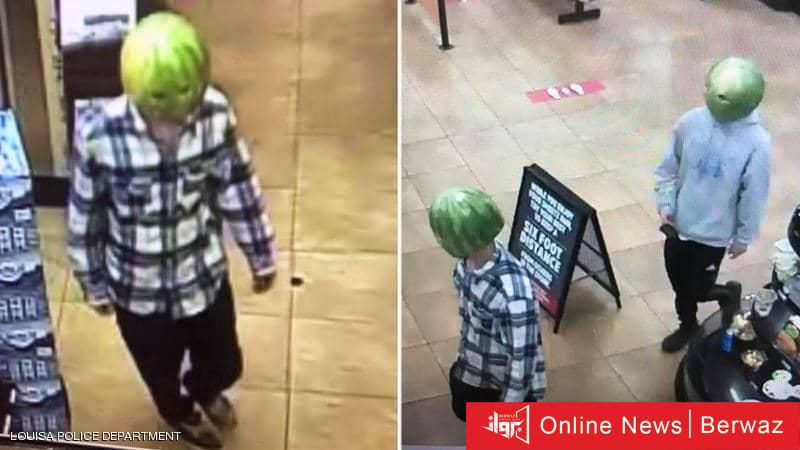 لكن واقعة السرقة لا تبدو بتلك البساطة للوهلة الأولى، إذ ابتكر المتهمان طريقة غير مألوفة للتخفي وخداع كاميرات المراقبة، وارتديا ثمرتي بطيخ مجوفتين، فيما فتحا فيهما فتحات صغيرة للرؤية.