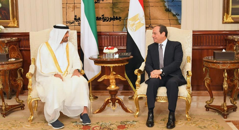 وذكر المتحدث باسم الرئاسة المصرية بسام راضي في بيان له أن ذلك جاء خلال جلسة مباحثات عقدها الرئيس السيسي مع ولى عهد أبو ظبي نائب القائد الأعلى للقوات المسلحة الإماراتية الشيخ محمد بن زايد.