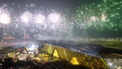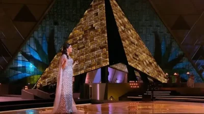 وأضاء المتحف أنواره وسط أجواء احتفالية مبهرة، حيث تألقت القطع الأثرية الفرعونية على أنغام الترانيم المصرية القديمة، وتزينت سماء الأهرامات بعروض الألعاب النارية والمجسمات الضوئية التي أبهرَت الحضور.