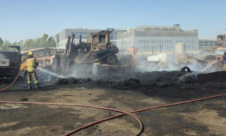 السيطرة ل حريق شاحنات ومهملات في سكراب أمغرة
