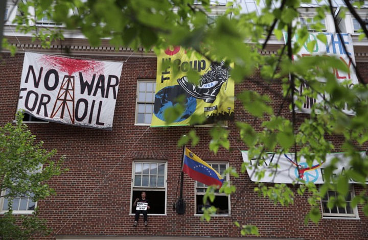 وأقامت مجموعة من النشطاء الحقوقيين الأمريكيين داخل السفارة، منذ 24 أبريل، بدعوة من الدبلوماسيين الفنزويليين لمنع الولايات المتحدة والمعارضة الفنزويلية من السيطرة على المبنى.