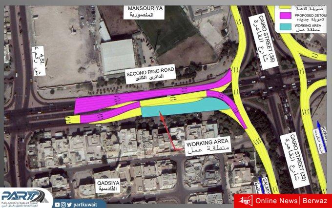 أفصحت الهيئة العامة للطرق والنقل البرى بالتعاون مع الإدارة العامة للمرور عن الموعد الرسمي لافتتاح التحويلة بطريق الدائري الثاني أمام منطقتي المنصورية والقادسية لعمل الطرق النهائية والخدمات بالمنطقة حسب المخطط المرفق على أن يكون ذلك فجر الجمعة المقبلة الموافق 29 ديسمبر 2023.