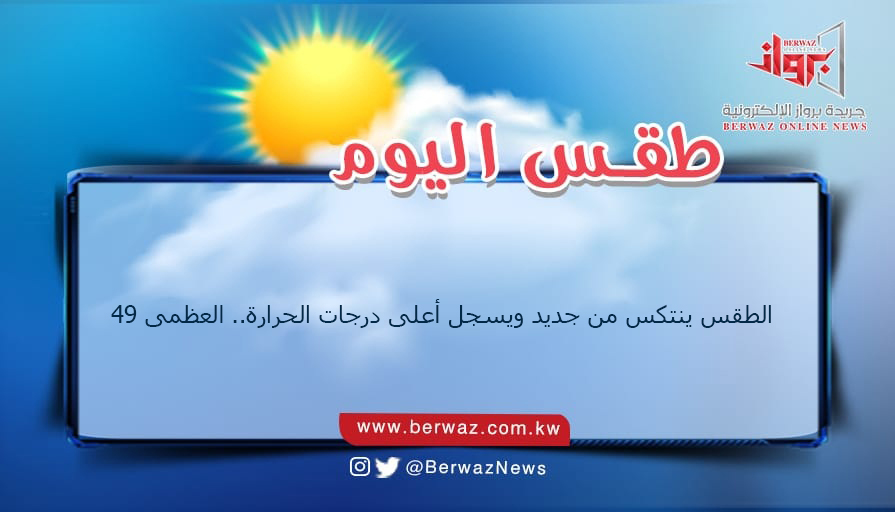 تعود درجات الحرارة لبلوغ أعلى درجاتها منذ أكثر من شهر،  ومن جانبها فقد أعلنت إدارة الأرصاد الجوية أن يسود اليوم طقس شديد الحرارة تكون فيه العظمى ٤٩ والصغرى ٣١.