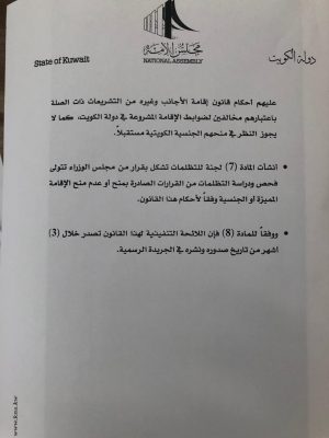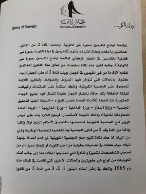 كما أوضح الغانم: ساعرض تفاصيل قانون البدون في ديوانية الغنام وسيكون لي لقاء تلفزيوني والقانون قدر المستطاع سيحافظ على الهوية الوطنية.